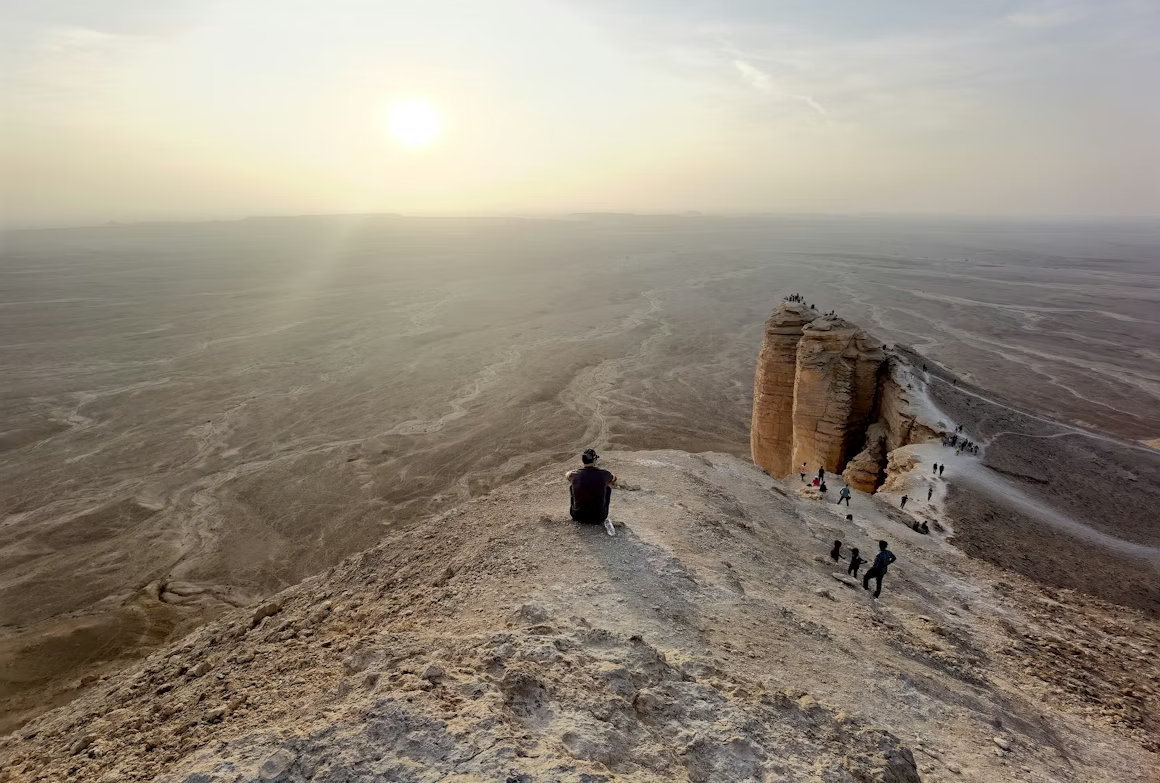 Salim and the Edge of the World: A Story of Courage and Memory At the Edge of the World, the cliffs of the Tuwaiq Escarpment rise sharply, endless and silent. For Salim, a local guide, this place is alive — it carries memories of his family, his childhood, and the desert he has loved since he was a boy.